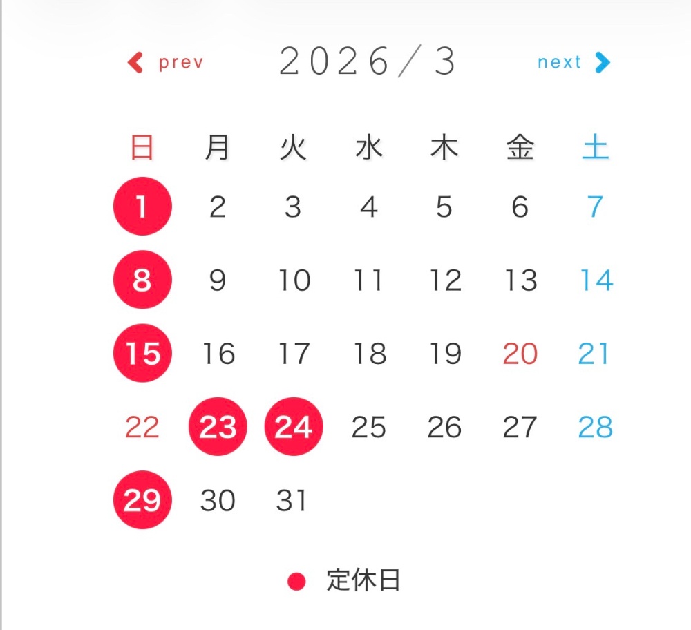 | 定休日 | 日曜日(月2回不定休) |